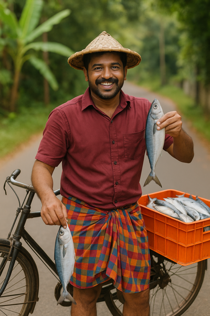 At dawn, our experts attend Trivandrum/Kollam Harbour auctions to secure the day’s best catch from small boats (വള്ളം).